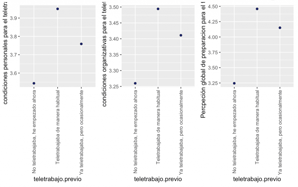 Aquí la duda está en si hablamos de una causalidad o de una codependencia. Puede ser que, efectivamente, la experiencia en el teletrabajo permita un desempeño más eficaz, pero también puede ser que quien ya teletrabajaba lo hacía porque o sus competencias o su puesto tiene una mayor «teletrabajabilidad» y, por lo tanto, la transición es más sencilla.