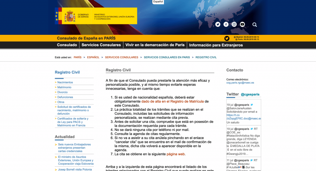 - Por otro lado, hay una asimetría importante entre las diferentes articulación de información de los trámites. Esto, intuyo, se debe a la capacidad y recursos para mejorar esta información porque el contenido hay que crearlo. Esto significa, no sólo alguien que lo escriba, sino que tenga experiencia, casuística y formación específica para que el resultado sea de calidad. Por ejemplo, podemos contrastar las diferencias entre la página de «registro civil» de Paris con la de Toronto y Bruselas, que parece ser la hecha por defecto del consulado